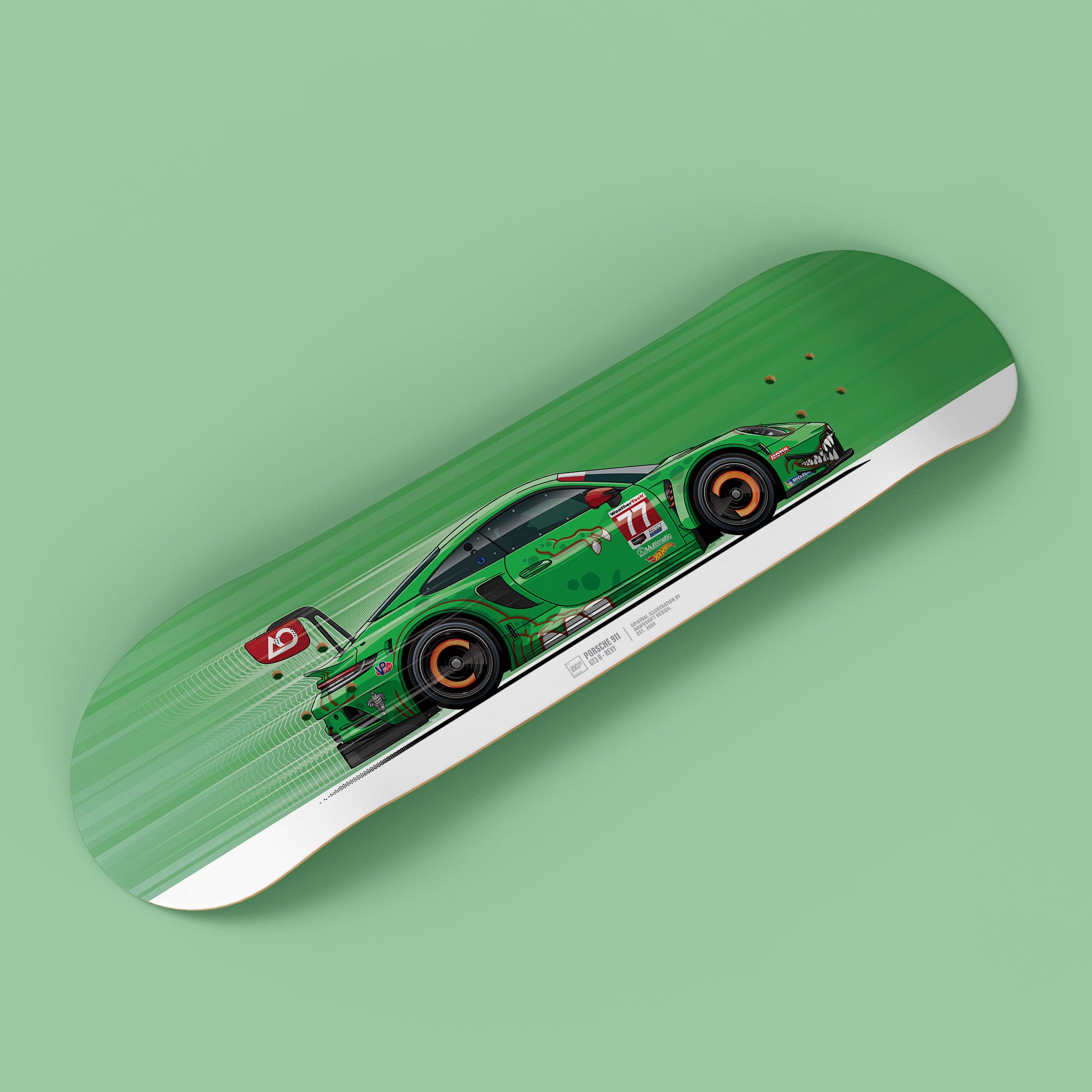 Transform your space with our iconic AO Racing - 911 GT3 R - Rexy Art Deck. Each custom skateboard, crafted from premium 7-ply Canadian maple, showcases your dream car in unparalleled detail. With a high-quality matte laminated finish, these decks elevate the artistry of automotive design to a piece of wall art you'll cherish. Designed for both skating enthusiasts and petrolheads, our decks offer the perfect balance of professional-grade quality and aesthetic brilliance.