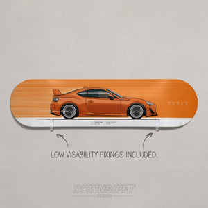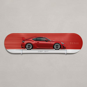 Transform your space with our iconic Toyota GT86 Art Deck. Each custom skateboard, crafted from premium 7-ply Canadian maple, showcases your dream car in unparalleled detail. With a high-quality matte laminated finish, these decks elevate the artistry of automotive design to a piece of wall art you'll cherish. Designed for both skating enthusiasts and petrolheads, our decks offer the perfect balance of professional-grade quality and aesthetic brilliance.